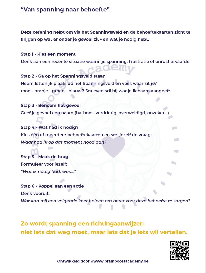 Brain Boost Academy en Centrum Differentia slaan de handen in elkaar om jongeren en hun begeleiders nog sterker te ondersteunen. Het digitale materiaal van Catherine De Vriendt vormt een krachtige aanvulling op de Spanningsveldmaterialen van Brain Boost Academy. Samen creëren we een inspirerend en onderbouwd aanbod dat inzicht, rust en veerkracht bevordert — zowel in de klas als daarbuiten.